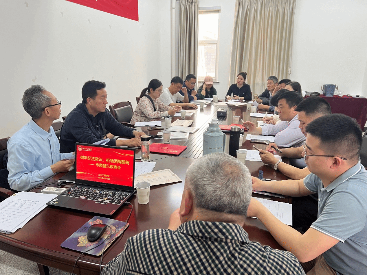 为进一步严明纪律规矩,强化警示教育,增强教职工法纪意识,筑牢教师底线和红线思维。4月18日下午,学院在天工楼404、321会议室,分别召开全院教师酒驾醉驾专题警示教育会,土木工程系、环境工程系、工程造价系全体教师参加,会议由各系支部书记主持。