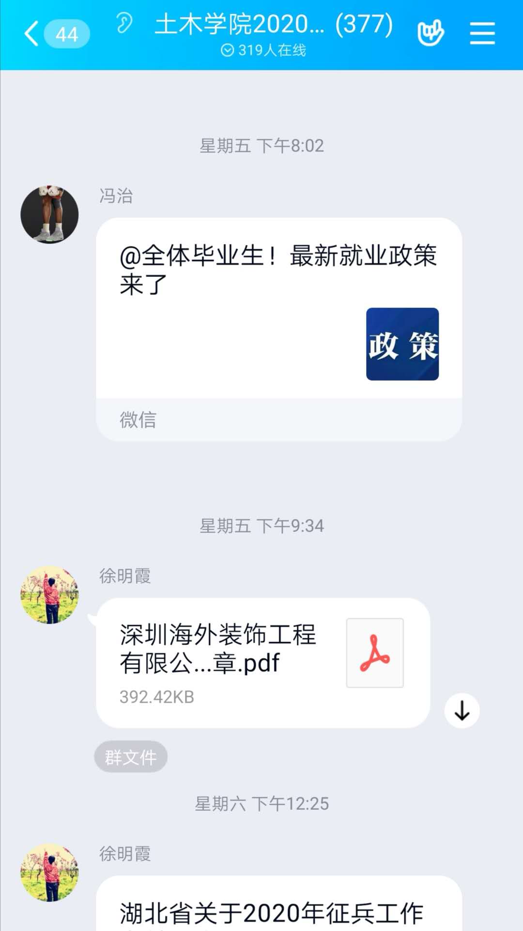积极宣传,重视引导,服务员工。学院充分利用学院官网、QQ群、微信群、官方微信公众号等平台,向全院师生宣传普及疫情防治知识和防控要求,引导员工理性认识疫情、科学做好自我防护。安排专职辅导员提供专业心理咨询服务,帮助员工做好心理“防疫”。充分发挥基层党支部战斗堡垒作用,积极引导员工党员,响应党的号召,下沉到所在社区、乡村,听从指挥,充分发挥党员先锋模范作用,参加防控工作,为打赢疫情防控阻击战贡献一份力量。同时学院广泛联系用人单位,收集招聘信息,通过QQ群、微信群,及时发布就业信息和政策,积极做好毕业生就业工作。