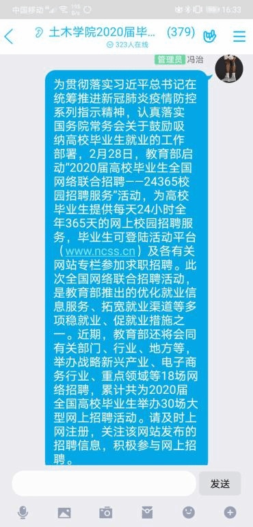 对于家庭经济困难、考研失利、就业迷茫、就业困难等毕业生做好心理疏导、求职推荐等工作,减少员工就业压力和焦虑情绪。班主任、辅导员通过视频交流、手机通话等多种贴近员工实际的方式,给予员工及时有效的就业指导。